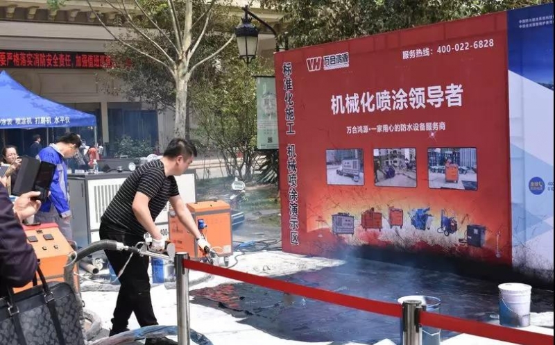 万合鸿源张卫先作了《抛丸机在防水工程中的应用》演讲。从企业企业文化、产品介绍、工程案例展示方面进行介绍,万合鸿源专注于防水卷材标准化、机械化施工机具的研发。